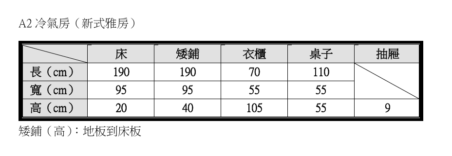 A2 棟 冷氣房(新式雅房)